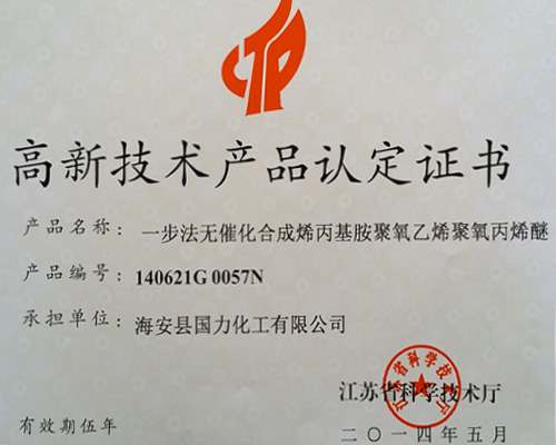 海安縣國力化工有限公司(臨沂國力化工有限公司)是一個集科、工、貿為一體的現代化企業。公司多年來一直致力于表面活性劑在紡織、印染、化纖、染料、醫藥、造紙 、皮革、金屬加工、電子等領域的開發和應用。主要產品有司盤系列、吐溫系列、滲透劑系列、乳化劑系列、聚醚系列、磷酸酯系列、抗靜電劑系列、勻染劑、分散劑、柔軟劑、凈 洗劑、消泡劑等,現已形成7大類,30多個系列,100多個品種。